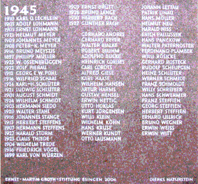 Über 60 Jahre nach dem Zweiten Weltkrieg errichtete die Stiftung auf dem Tornescher Friedhof einen Gedenkstein. Auf ihm sind die Namen der 217 Opfer dieses Krieges eingraviert.